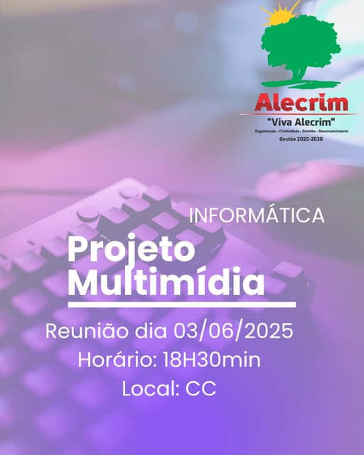 A Secretaria Municipal de Educação de Alecrim convida todos os pais e responsáveis dos alunos inscritos, desde o início do ano passado, no Projeto Multimídia, para uma importante reunião que acontecerá no dia 03 de junho, às 18h30, no Centro de Convivência.